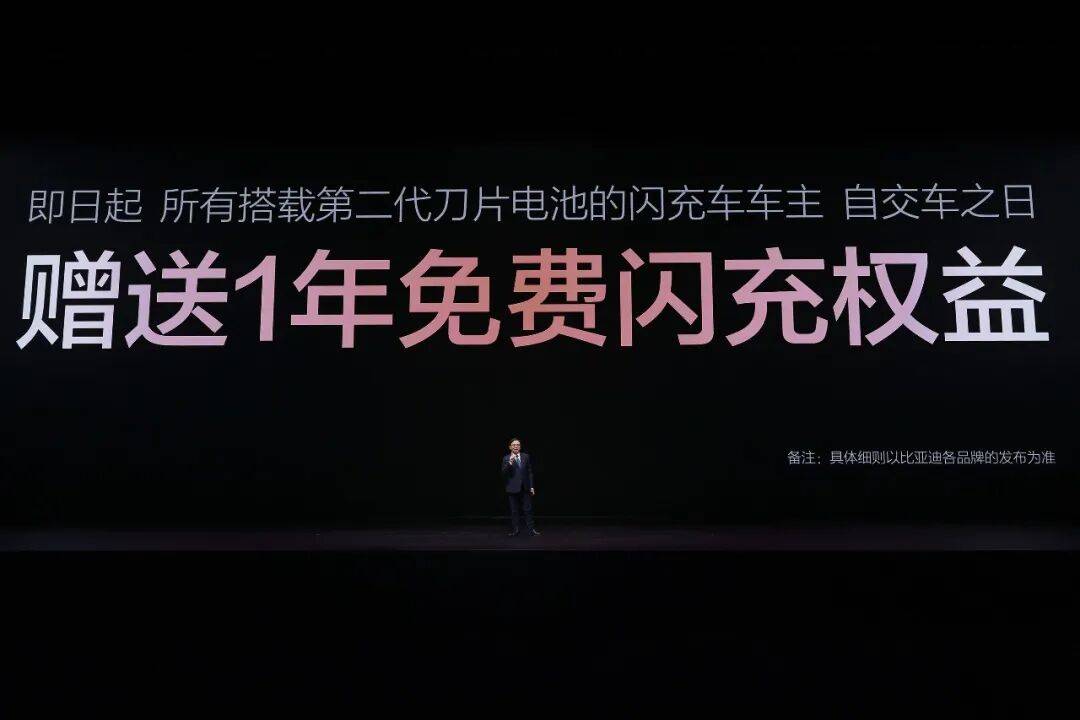 发布会现场,王传福还宣布:所有搭载第二代刀片电池的闪充车车主,均享有重磅“闪充权益”,自交车之日起,在全国闪充站可享受1年的免费闪充权益,让闪充体验更畅快。并且,在闪充免费期结束后,也会同行业保持一致,不会额外收费。仰望、腾势和方程豹新车型搭载第二代刀片电池及闪充技术。