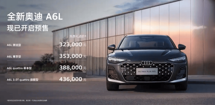 售价下探,源于中国品牌激烈竞争导致奥迪在华销量承压。与上代一样,全新A6L由一汽-奥迪合资公司本土生产。中国市场虽不提供A6 Avant旅行版,但不久后将推出更动感的长轴旅行车 —— A7L。