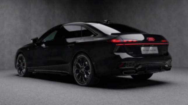 加长后的后排车门是最直观的特征,同时奥迪在前脸也做了多处细节调整:格栅内部结构重新设计,一条纤细LED灯带环绕发光四环车标;金属饰条延伸至大灯内部,让前脸更具精致感。