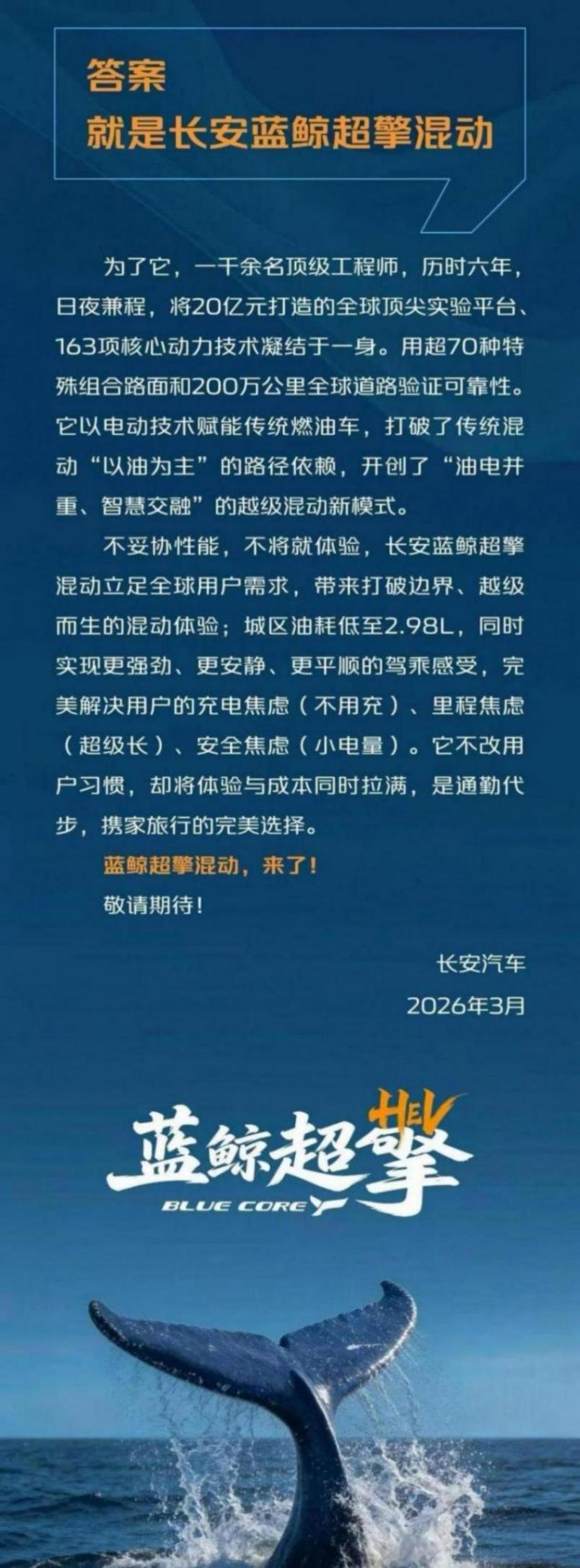 就在今天(3月12日),长安汽车正式发布《长安蓝鲸超擎混动》宣言,用一项历时6年、投入20亿元打造的新一代混动技术,给出了自己的答案:真正的回暖,必须靠技术,而不能只靠降价!