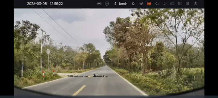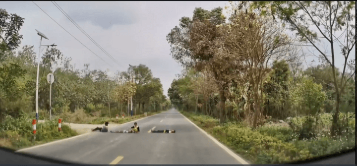 4、识别马路上平躺的四个小孩子,有减速,但不能刹停