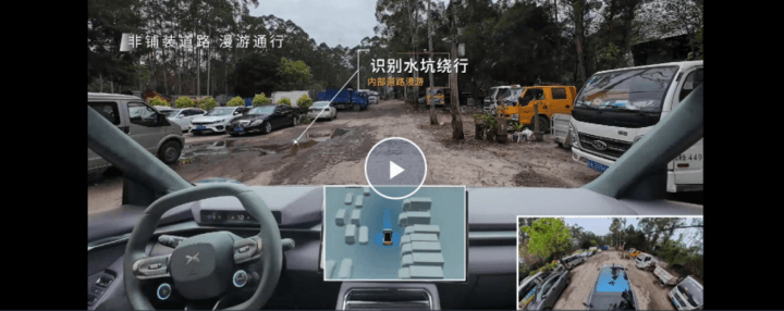 它是怎么识别水坑的?其实这个就是得益于它使用的摄像头,具有更多的色域, 它的色域和动态范围更大更宽,同时输入信息更多,在配合上,摄像头一般是800万甚至更高像素的输入密度。所以它有更多的信号可以判断当前的路况,因为在这里面它没有一个可行驶区域的概念,它更多的还是判断这个地方它真实的路况是什么?它的材质是什么?所以见到水坑,如果数据足够多的话,它就应该知道见到这样不可行驶的区域,要绕过去。而见到那些躲不过去的,选择减速过去。