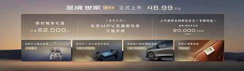 2026年3月17日,上汽通用别克至境世家纯电版正式上市,它这次只推出了一款车型,售价为48.99万元。同时,它还推出了限时五大礼遇,价值6.2万元,并且上汽通用及特斯拉车主还有专享至高2万元置换、增购补贴。