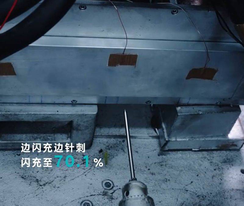 其中,针刺实验难度系数升级,第二代刀片电池500次闪充循环后,边闪充边针刺实验,500次闪充循环约等于私家车15年的行驶里程,这一测试成功印证长期闪充不影响电池安全。