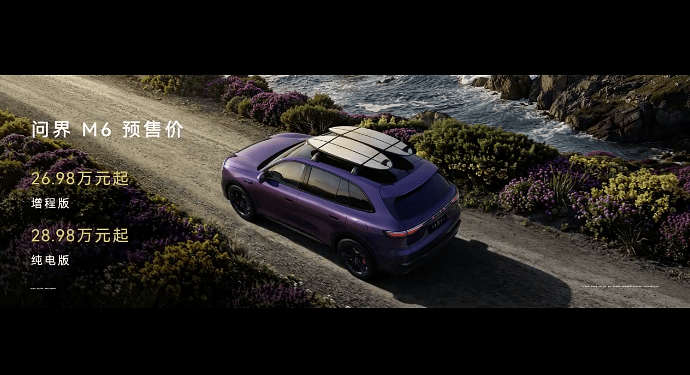 全新车型问界M6今日正式发布并开启预订,纯电版预售价28.98万起,增程版预售价26.98万起,有望于第二季度上市。问界M6定位年轻运动市场,填补M5和M7之间的市场空白,助力问界进一步抢占中大型大五座SUV的份额。