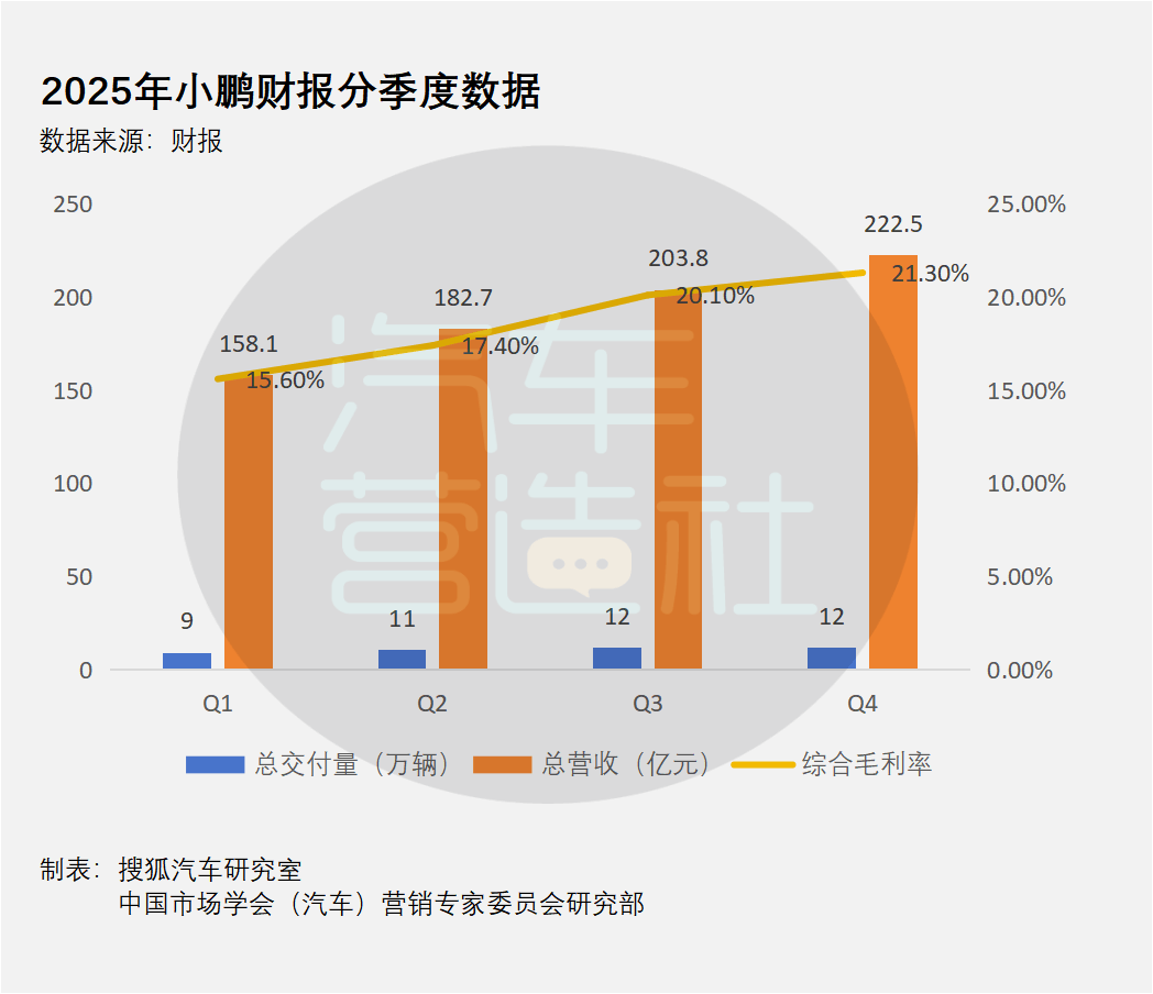 从财报数据看,小鹏全年交付量逐季稳步攀升,Q4 创下单季新高,全年同比增长 125.9%;营收连续四个季度环比增长,Q4 达 222.5 亿元,同比增长 38.2%;毛利率也连续四个季度提升,从 Q1 的 15.6% 升至 Q4 的 21.3%,盈利效率也在持续改善。这意味着,小鹏2025年真正修复的,不只是某一个季度的表现,而是全年经营节奏。