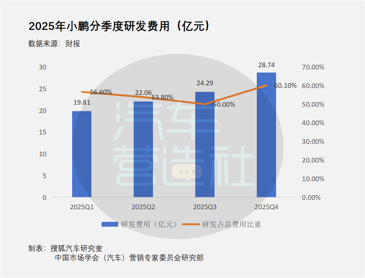 尽管2025年总体仍然亏损,但小鹏并没有在研发费用上“节流”,反而是持续增加投入。