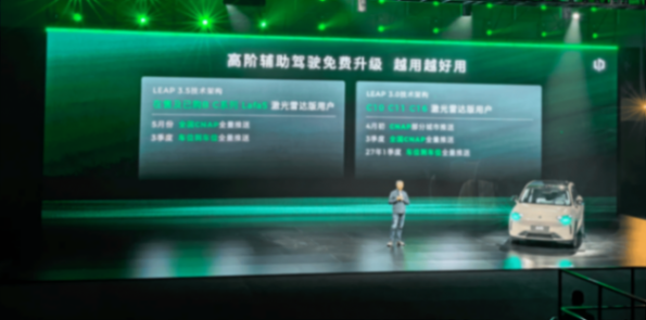 LEAP3.5架构车型即在售B、C系列、Lafa5激光雷达版车型将于5月全量推送全国城区CNAP、第三季度全量推送车位到车位辅助驾驶。