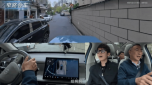 ▲零跑世界模型辅助驾驶系统在窄路会车时表现