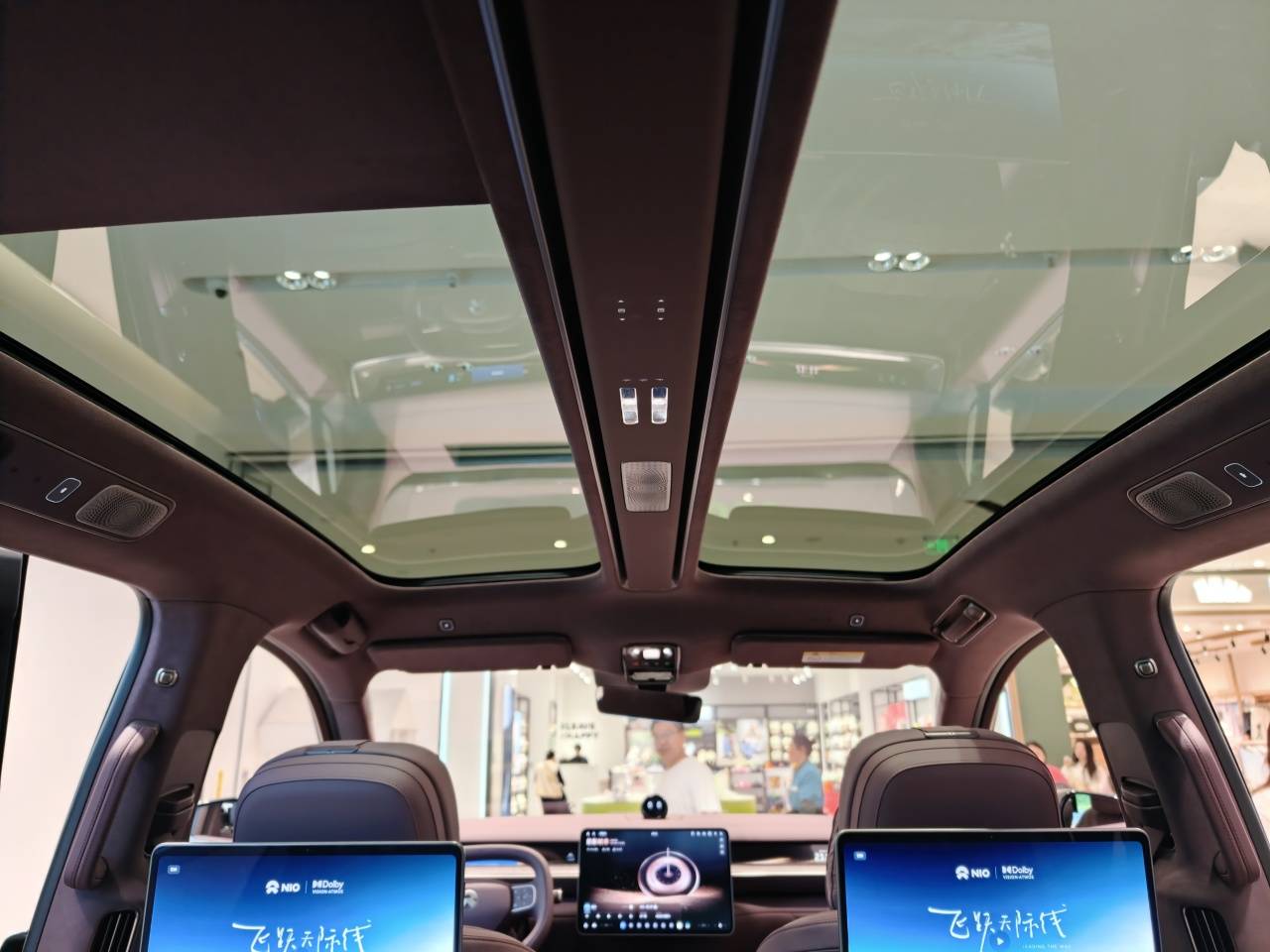 当然,蔚来ES9和ES8最大的区别之一,是采用了左右双天窗设计,天窗卷帘采用长滑轨设计,被称为“天空岛”。天窗中部是控制区域,这种分段式处理强化了左右乘坐者的隔断感。体验中发现,中部天窗触控按键反馈不是太敏捷,而且按键区域发热量偏高,大概率是展示时长过久、操作频次较高导致。