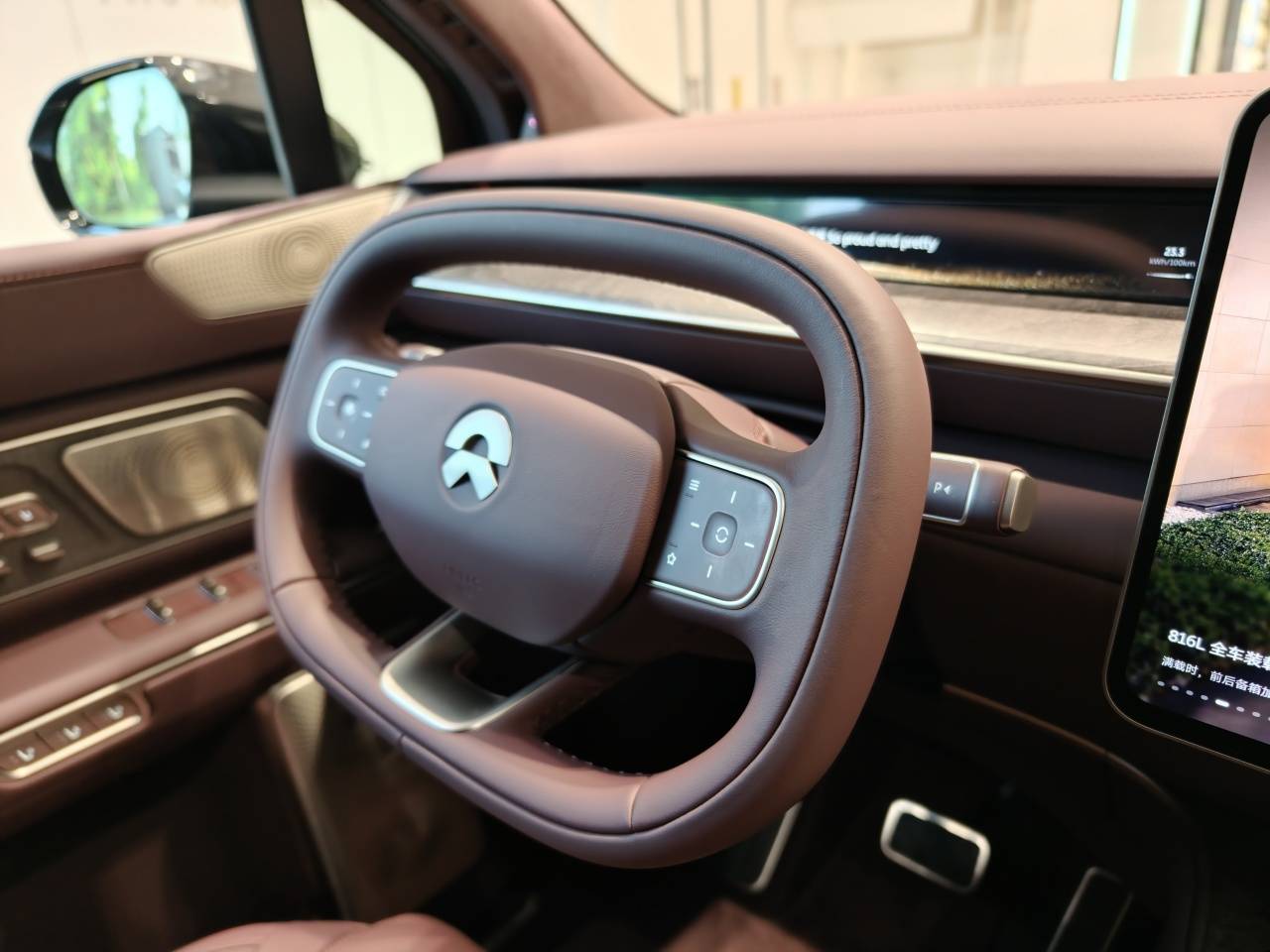 此次蔚来ES9全系标配线控转向系统,因此搭载了双平底式方向盘,不过这也是消费者询问比较多的地方。还有两个细节:前IP台采用直立式设计,有效拓展了前排腿部空间;前排扶手箱升级为电动款式,内部储物容积不算超大,但里面有植绒处理。