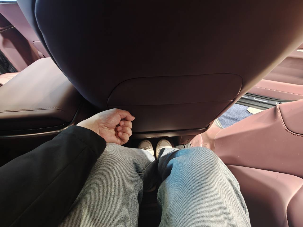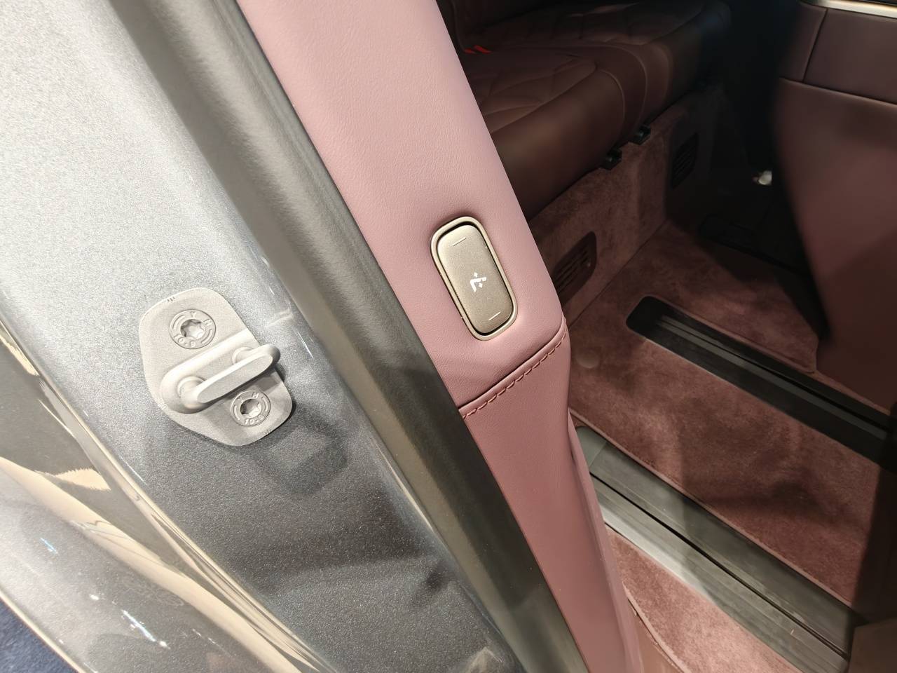 由于中岛的存在,用户进入第三排需要先将第二排座椅前移,好在只需按压车门框侧边的按键,即可一键放倒第二排,第三排落座后再一键复位。相比早期体验过的极氪009的无中央通道版本,蔚来ES9的第二排变化速度更快一些。