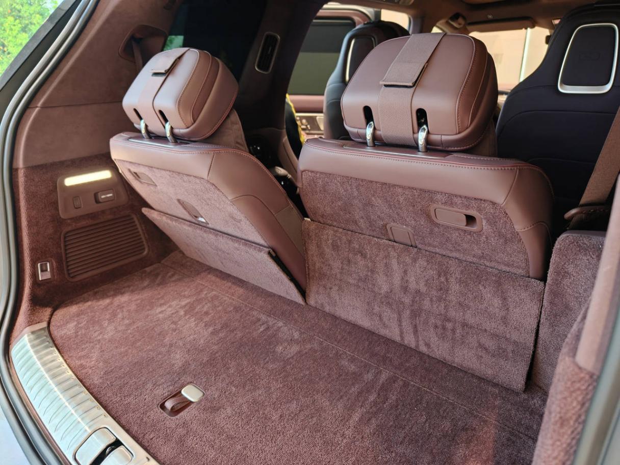 作为轴距3250mm的全尺寸SUV,蔚来ES9的第三排空间还是非常充裕。复位第二排后,第三排膝部空间差不多一拳多一些,头部空间大概一拳,并且第三排座椅的坐垫支撑出色,没有“小板凳”或者局促感。只是由于前排座椅太大,导致采光稍弱,没有豪华MPV那种开扬感。当然,第三排也配备了手动遮阳帘,车窗周边全部采用翻毛皮材质包裹,此外第三排座椅还支持前后移动与靠背角度调节,甚至还有一个车内通话的按键。