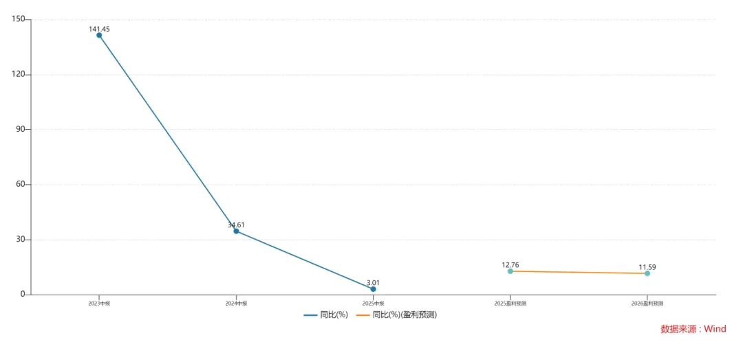 利润方面,今年上半年,公司实现归母净利润20.77亿元,同比增长3.01%,而该增速,创下了近三年的中报利润增速低点。