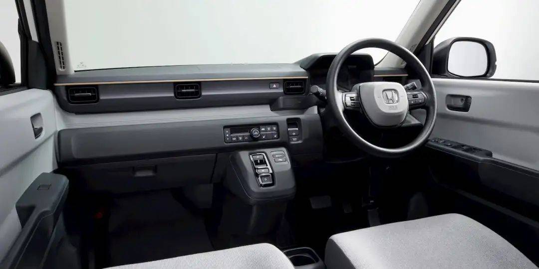 进入车内,N‑ONE e设计较为简洁,与国内车企追求大尺寸屏幕不同,新车基础版并未提供中控屏,而是保留了实体按键与多媒体控制按钮。即便是配有9英寸Honda Connect屏幕的版本,依然保留了物理按键。看图片大家有没有一种感觉,本田的这台小车有种让车回归本身的“返璞归真”。