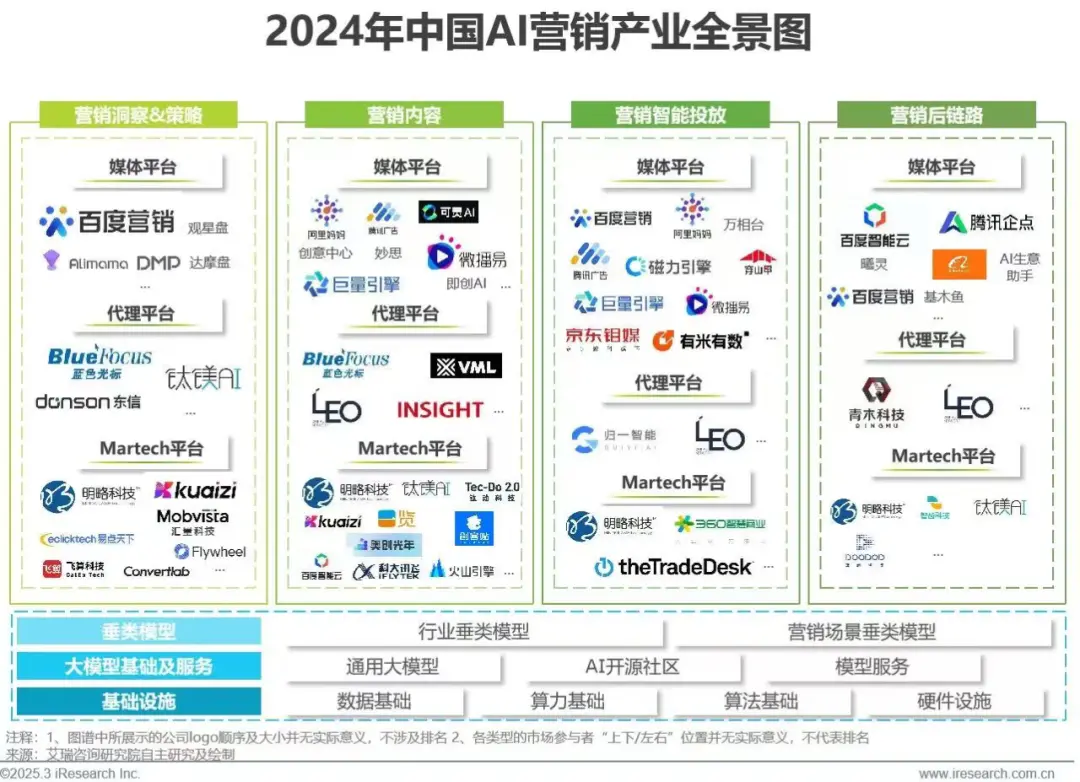 回看国内,腾讯近日首次公布了“AI产品应用全景图”,腾讯正构建覆盖AI营销全链路的自有基础设施。同时,坐拥微信、QQ两大国民级应用,其掌握的10亿级用户实时行为数据与流量入口,正大幅挤压中小营销服务商的生存空间。