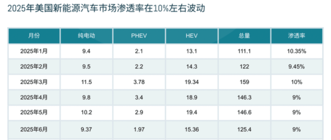 在美国,今年上半年,HEV+PHEV单月销量在总体市场的占比均在13%以上,占比最高的月份出现在4月份,市占率高达15.24%。作为对比,BEV(纯电动车)单月市占率最高为8.4%——“广义混动”的市场份额是纯电动车的1.8倍有余!目前,美国市场的HEV市场仍呈现持续增长趋势。