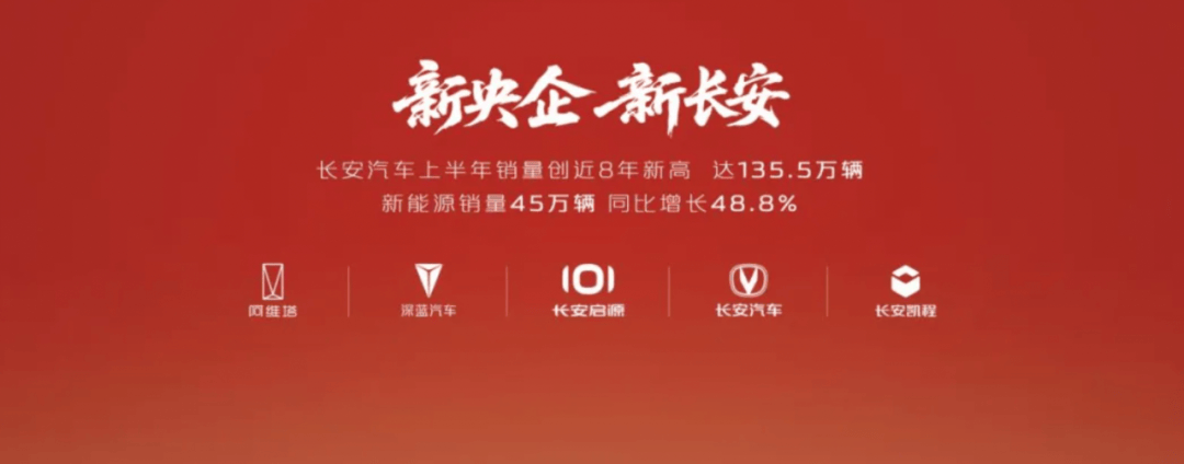 今年上半年,中国长安汽车已实现整车销量135.5万辆,其中新能源汽车45.1万辆,同比增长49%,创近8年新高,7月份,新能源销量超7.9万辆,同比增长超73%。