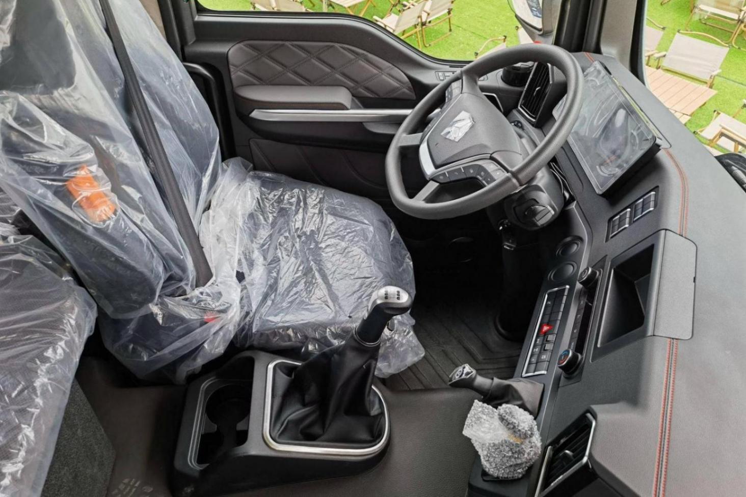 舒适方面,汕德卡G7M牵引车驾驶室采用高顶设计,打造了“多功能移动生活舱”,车内采用软包内饰材质,配备10.1寸悬浮中控屏+14键皮质方向盘、内嵌小桌板和抽拉式遮阳帘,提升了长途出行的品质感。同时,汕德卡G7M牵引车的卧铺宽度增加15%,储物空间增加20%,进一步增强了舒适性。