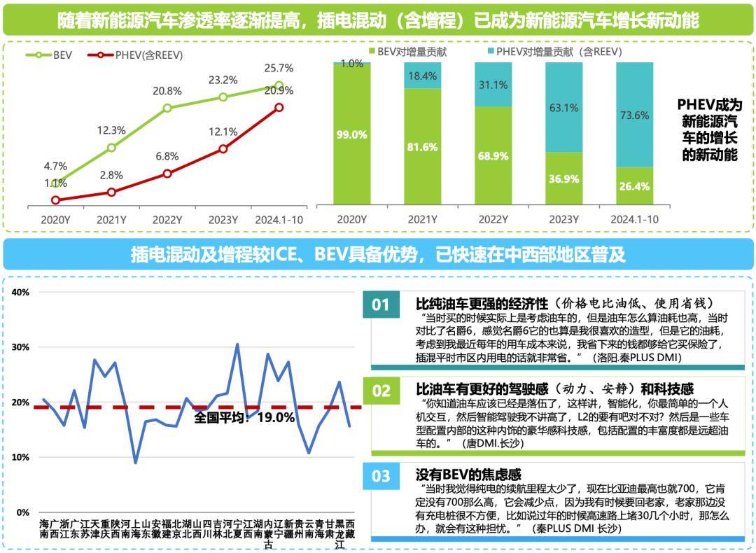 徐长明表示:“从区域市场看,PHEV(含REEV)渗透率基本均衡,且同步提升。插混及增程相较油车具有更强的经济性、驾驶感和科技感,相较纯电动汽车没有里程焦虑,更适配我国中西部省份的车辆使用需求。”