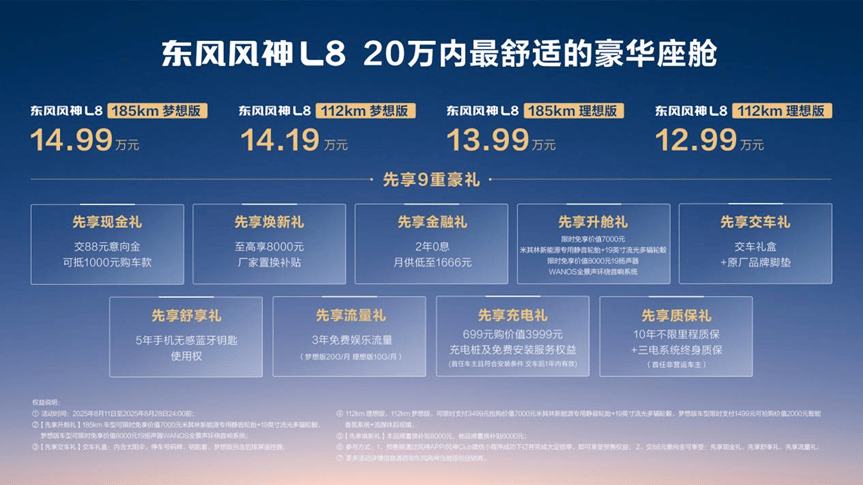 8月11日,东风新旗舰 | 奕派科技首款全新战略车型——“大家好智混SUV”东风风神L8开启预售,预售价12.99-14.99万元。
