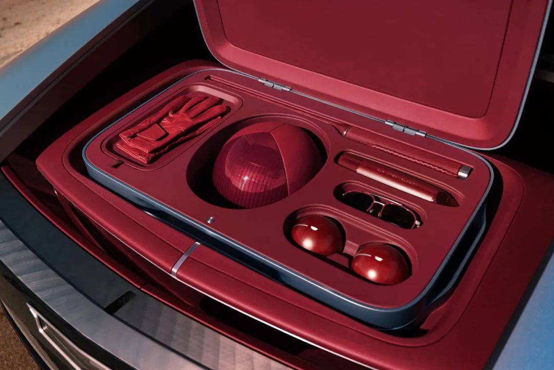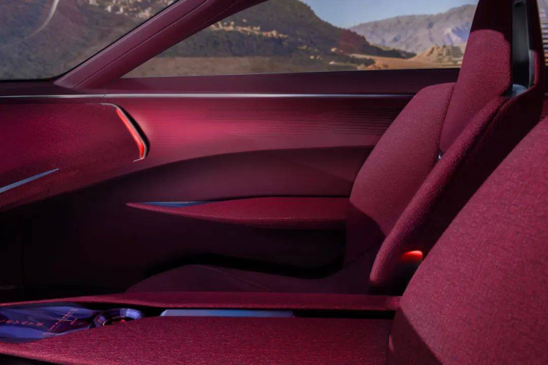外观彰显雕塑般的尊贵气度,并融合了高效的2+2座舱,体现速度感。其采用雾蓝色外观,并以冰川灰为基调,与火红的内饰形成鲜明对比,进一步表达了概念车的极致性能与多面个性。蓝色元素延伸至前后挡风玻璃和蓝色调的侧窗。