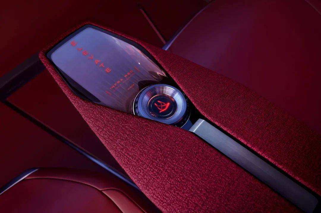 提升模式由驾驶员激活。激活后,Elevated Velocity概念车进入自动驾驶模式,车内空间转变为乘员的恢复区域。在提升模式下,踏板和方向盘收起,车外温度、驾驶员体温和车内温度显示屏帮助优化性能。车内环境照明切换为红色,座椅靠背照明采用红外光,以促进概念车乘员的最佳表现。车门采用背光设计,以同步呼吸与动作,进一步强调身体恢复主题。方向柱上方的一盏灯光前后移动,配合引擎盖上显示的动画,协助乘员进入性能所需的心理状态。