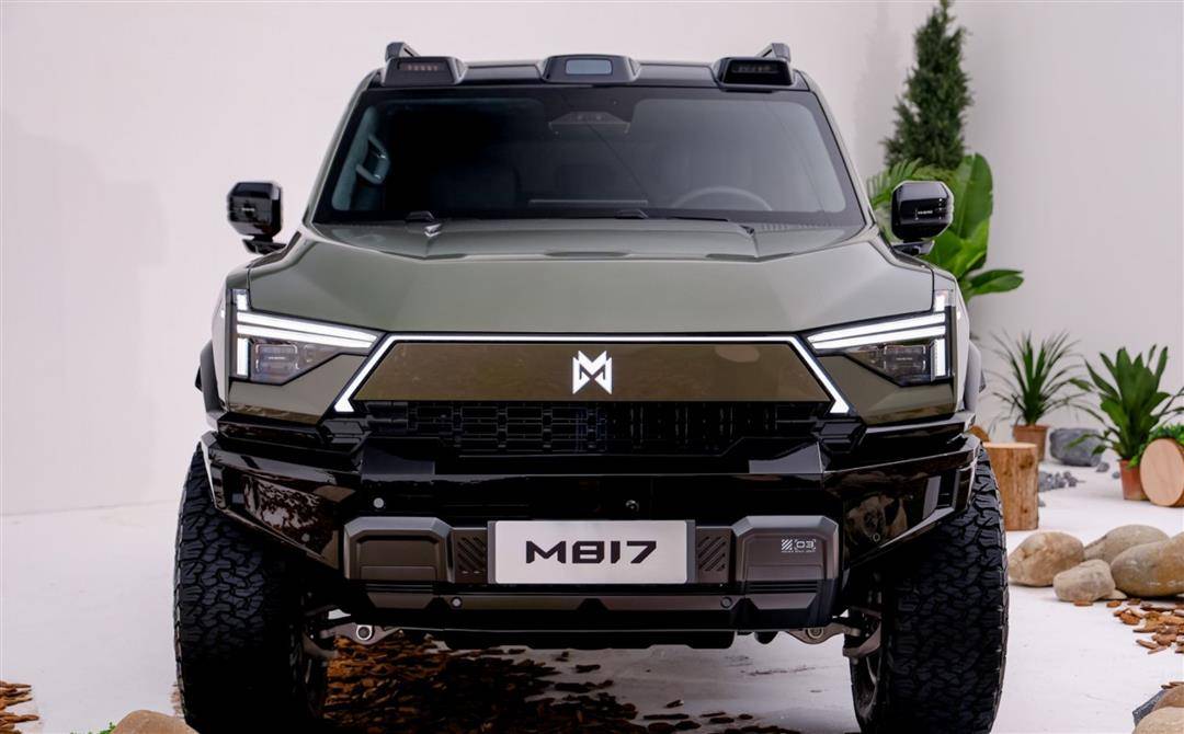 车头配备梯形的LED灯带以及可发光的LOGO,配合两侧的止戈为武2.0大灯组,看起来很精致且犀利。下方宽大的越野风格保险杠依旧瞬间能把人带回到野外,前接近来到了31°,配合上空气悬架,M817的通过能力会非常夸张。颜色方面,新车提供秦岭绿、玉龙银、鸣沙黄、茶卡蓝、格宗黑、昆仑白6种选择。