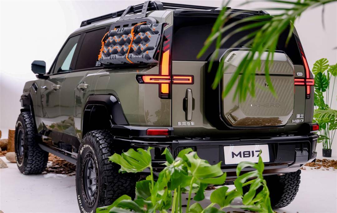 车身尺寸方面,车辆长宽高分别为5100/1998/1899mm,轴距为3005mm。来到车尾,M817配备了家族式的十字形剑指苍穹尾灯,辨识度相当高。后包围的整体造型非常硬核,离去角也有31°,20°纵向通过角和237mm最小离地间隙,最大涉水深度为900mm。PS:陆巡的涉水深度标定是750mm,坦克500是800mm。