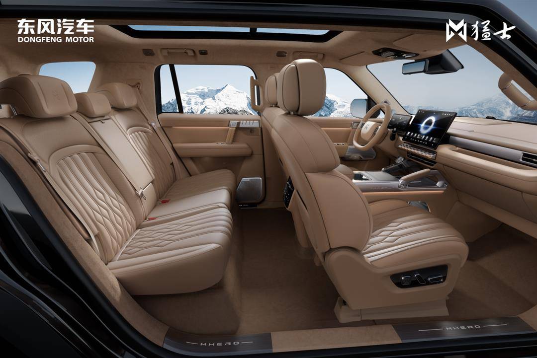 通过能力的配置上,猛士M817搭载1种AUTO模式、2种驾驶模式、6种全地形模式共9种驾驶模式,实现全场景覆盖;猛士智能E锁可1秒内完成四轮转速同步,扭矩精准分配至不打滑车轮,即便三轮打滑也能单轮脱困;3.5米最小掉头半径的猛士原地掉头功能,野外遇障可快速脱困。配备150mm上下可调空气悬架,地库模式下车身降至1850mm,轻松通过1.9m限高地库,向上调节底盘升高105mm,最小离地间隙333mm。