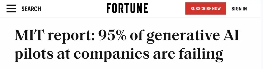 那些登上新闻头版「95%失败率」,特指的是,企业委托供应商或内部开发的、昂贵且定制化的企业级AI解决方案。
