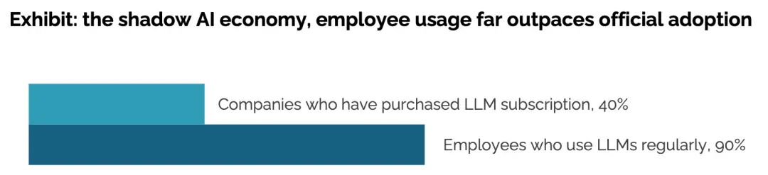 虽然40%的公司都订阅了大模型服务,但90%的员工依然会选择用「个人AI工具」悄悄干活!