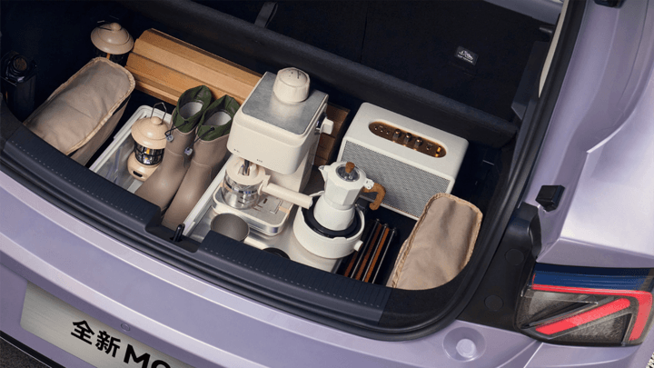需要补充的是,此处并不是说后悬使用多连杆,后备箱就无法实现下沉空间,而是仅针对A级两厢电动车来讲,由于自身没有长后悬的车身结构,后悬位置的底盘空间本来就相对局促,而为了追求更大的隐藏容积,简单粗暴的办法,就只能是通过没有额外独立连杆占用底盘空间的扭力梁实现。所以在切换后悬结构后,新车腾出了98升的下沉储物容积,从实用性角度看,这也是较星愿、海鸥和萤火虫等两厢电动车,有储物优势的地方。