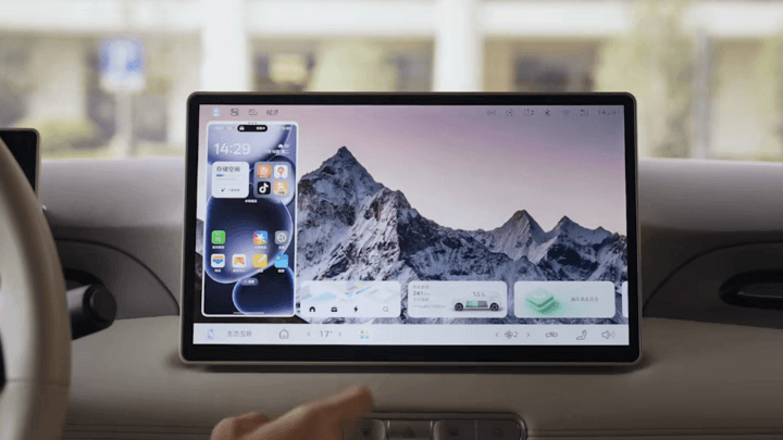 第三个变化,是座舱升级了新系统。此次新车首发搭载OPPO智行手车互联系统,硬件部分采用高通8155芯片,支持兼容ios、安卓等主流手机操作系统,功能方面支持语音备车,即通过移动端语音指令,车辆提前执行空调、导航等任务信息,另外车端不用预装APP,移动端数据软件可以直接流转至中控屏,OTA后还将解锁感应控车卡片和接力导航等功能。