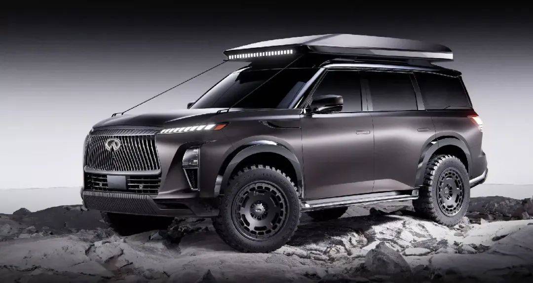 英菲尼迪暂未透露该概念车的详细参数,但从设计上可清晰看到其越野升级:包括前后底盘护板与升高的离地间隙,车身配备隆起的越野轮眉,搭配全地形轮胎与硬朗轮毂,进一步适配复杂路况。