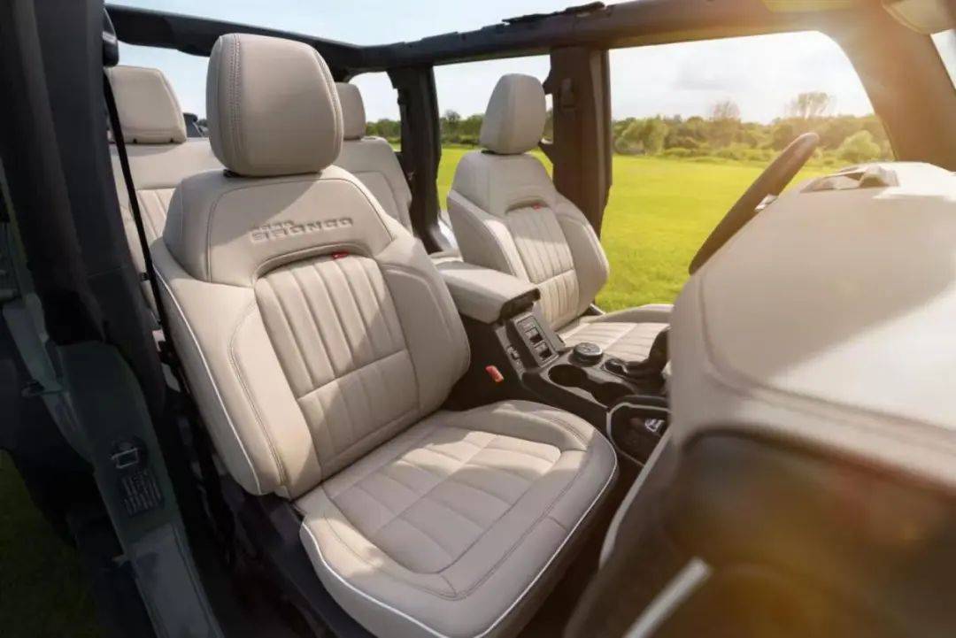 内饰采用曙光沙白全新配色,灵感源自阳光沙丘,将野性与优雅融合;定制红色刺绣标牌、Bronco专属身份铭牌,把高定细节融入座舱。这些看不见的工艺成本,让车辆从使用品变为艺术品,每一处细节都彰显物超所值的匠心,使车主的投入,能收获奢品级体验的价值反馈。