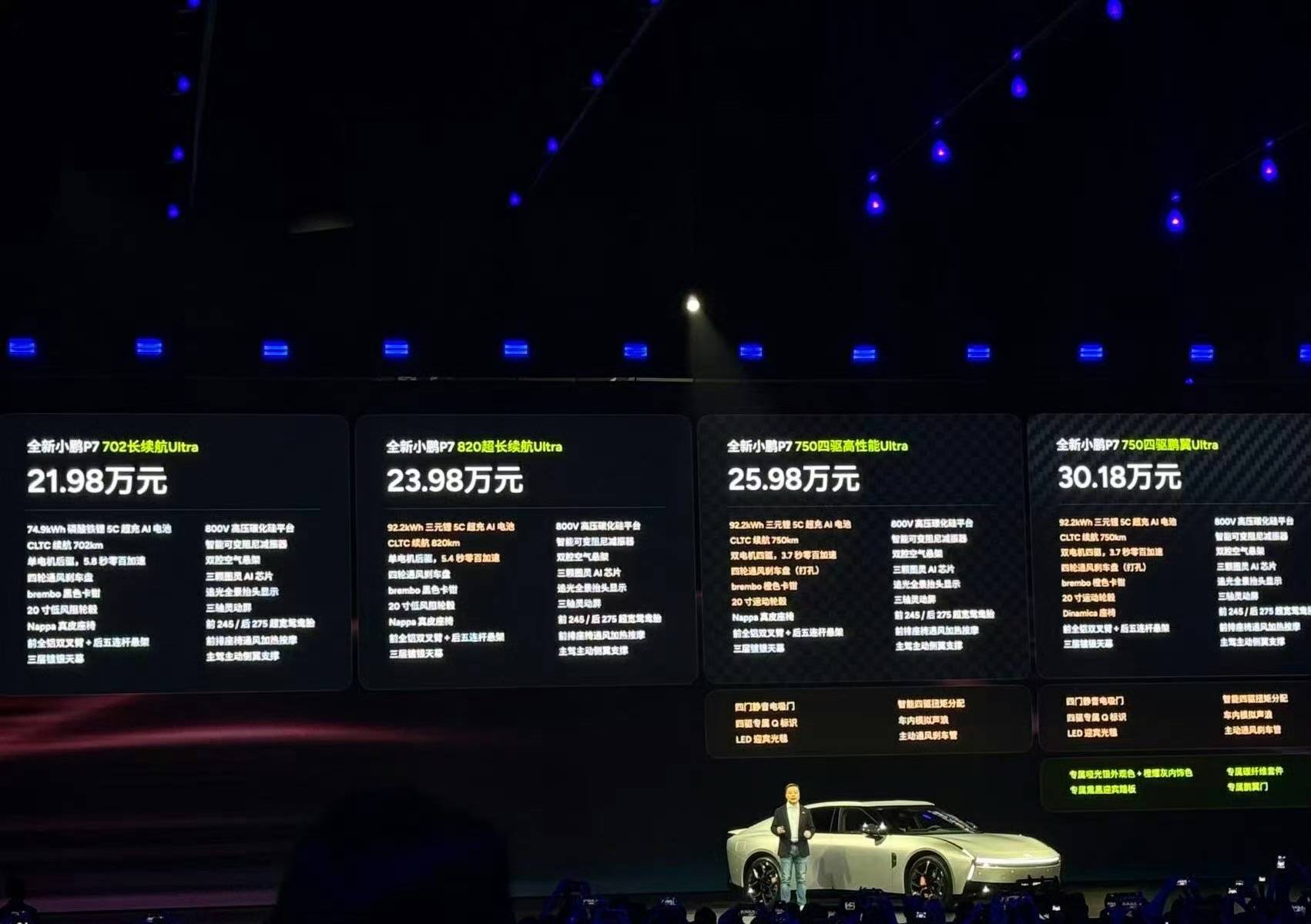 一款新车在上市7分钟内狂揽10000台大定,市场对它的期待值不言而喻。甚至还有人评价它是“20万价位,却揣着百万级科技”。8月27日,基于800V高压平台打造的全新小鹏P7正式发布,共推出4款车型,售价区间为21.98-30.18万元。新车不仅采用了全新的设计语言,还有亮眼的核心性能:CLTC纯电续航最高至820km、充电10分钟补能525km、全系标配双腔空气悬架等,进一步夯实了其在同价位的竞争力。