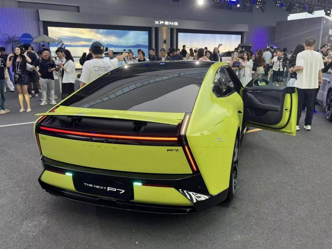 车尾部分,尾灯造型与前脸形成呼应,还配备了主动式升降电动尾翼,支持10档随速调节以及防夹。掀背式尾门设计大大提升了车辆的装载能力,拓展容积可达1677L。颜色方面,全新小鹏P7提供星瀚绿、星暮紫、新月银、星芒蓝、微星灰和律动黄共6款车身颜色可选。同时还有量子标识、迎宾光毯、尾部小蓝灯等细节提供。