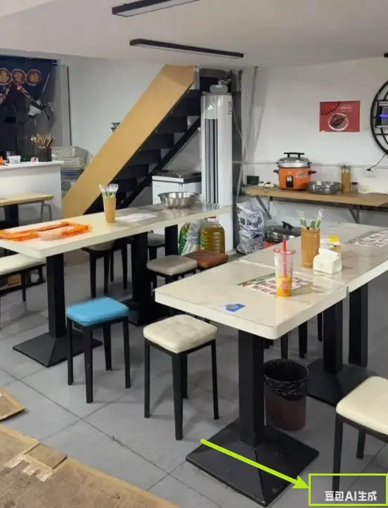 乍一看,干净整洁,窗明几净。结果仔细一瞧,图片的右下角又写着几个大字——「 豆包 AI 生成 」。