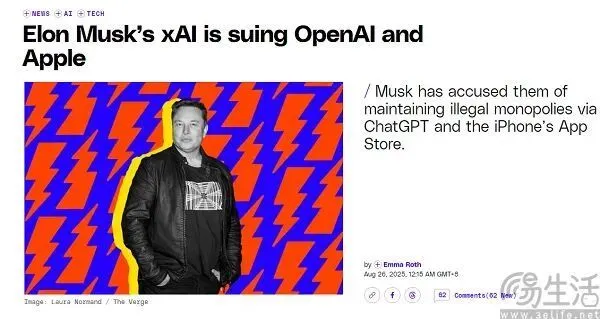 只不过外界都没想到的是,这一次马斯克并没有停留在过过嘴瘾上,而是真的付诸行动了。就在当地时间8月25日,马斯克旗下xAI采取法律行动,起诉了苹果公司和OpenAI,指控双方的协议将扼杀AI行业的市场竞争。