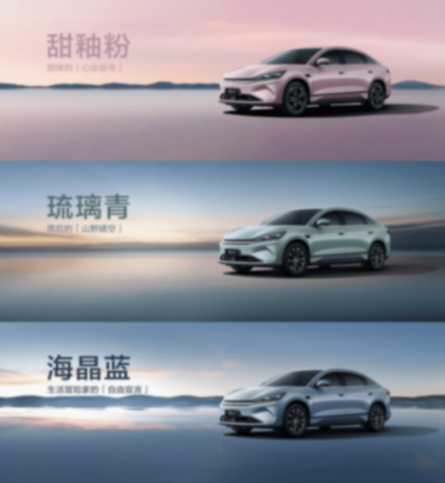 值得一提的是,此次秦L EV全系新增了三款配色,包括甜釉粉、琉璃青、海晶蓝等等,配色十分鲜艳,年轻人应该会喜欢。