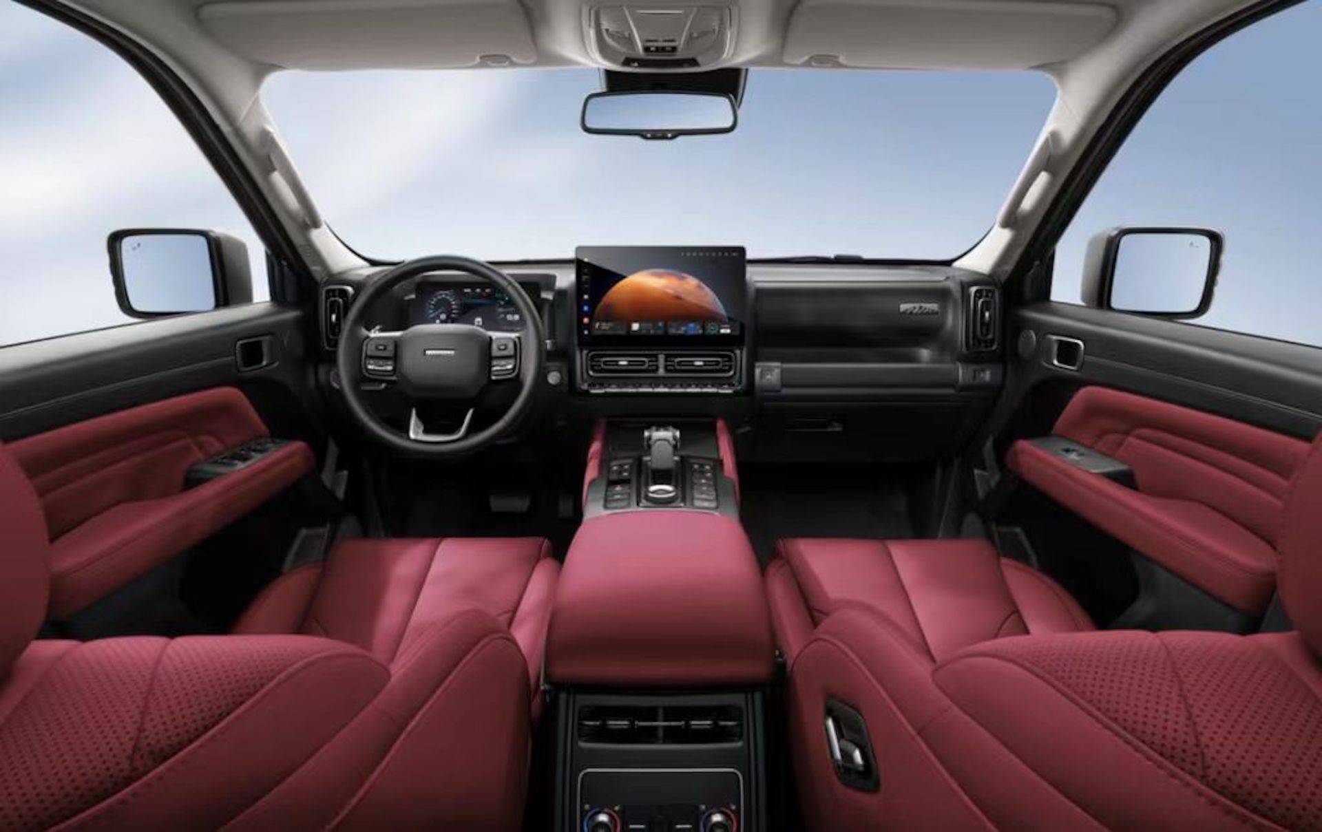 具体来看,前格栅、前、后灯装饰框、前后杠下护板、轮毂都进行了黑化处理,出厂自带改装的炫酷外观与霸气气场。车身侧面延续了辨识度十足的“方盒子”造型,前后侧翼子板与黑色轮眉衔接,形成了宽体视觉效果,进一步凸显越野气质。