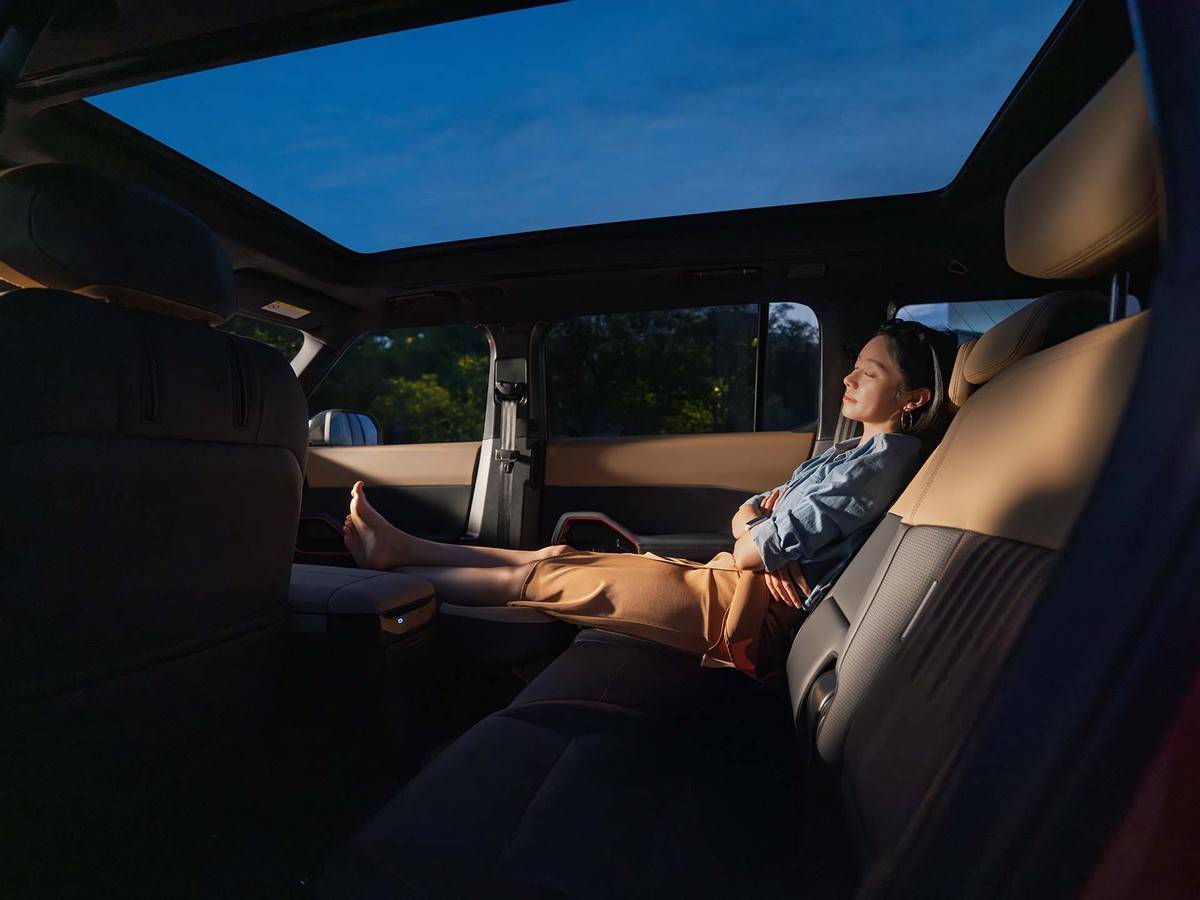 作为全球首款原厂配备可举升车顶的SUV,福特智趣烈马可一键提升36厘米头部空间,实现车内直立坐姿。篷布支持改装,举升天窗具防雨防风防虫功能,三十秒快速升顶。一、二排真“一键成床”,无需搬运行李,配合B柱出风口、C柱充电口和阅读灯,营造星级睡眠体验。